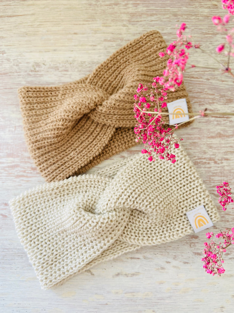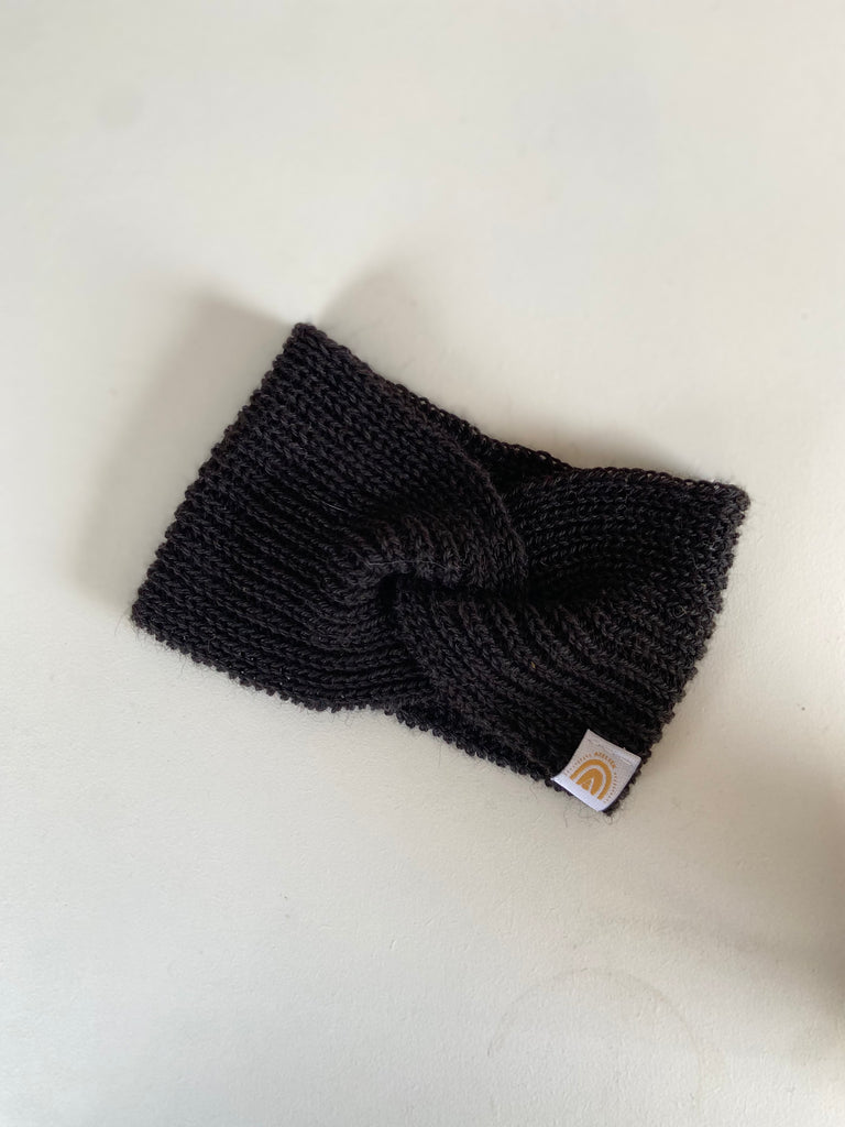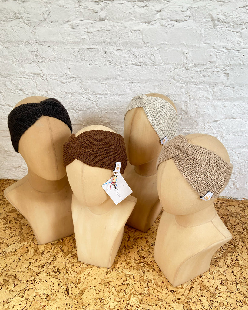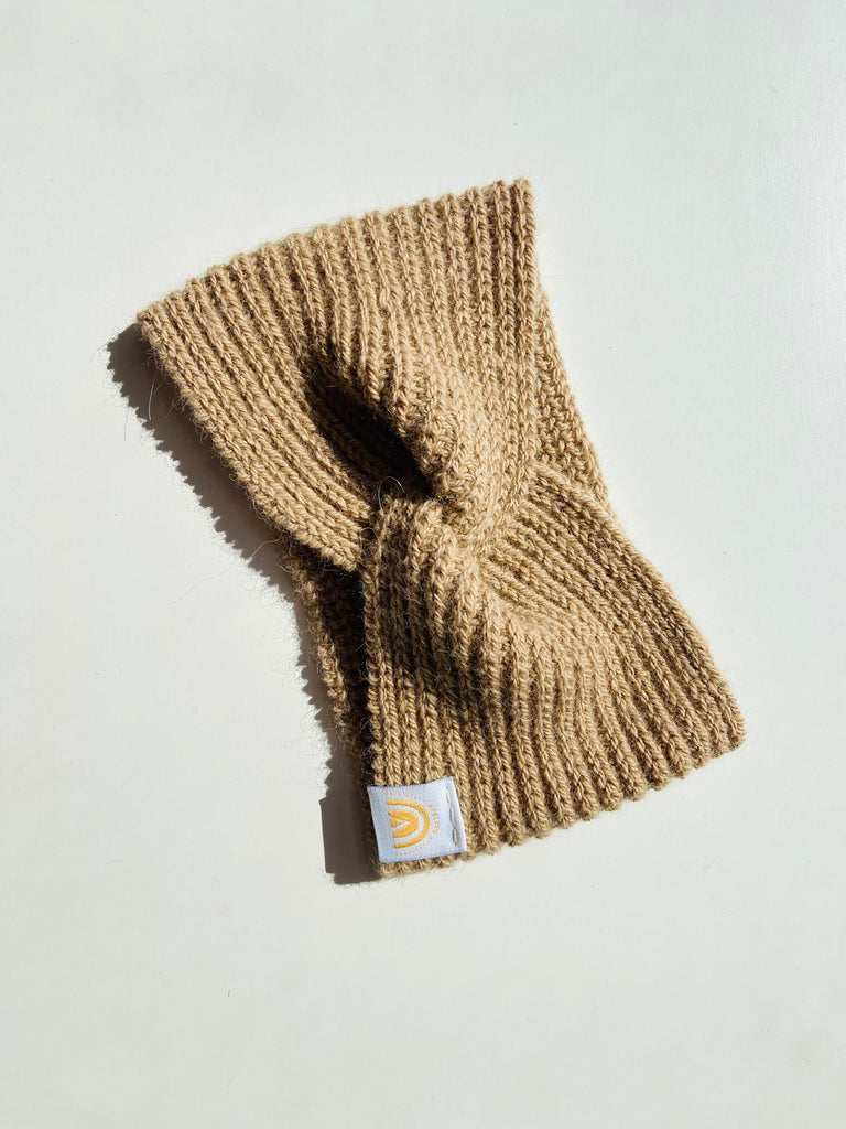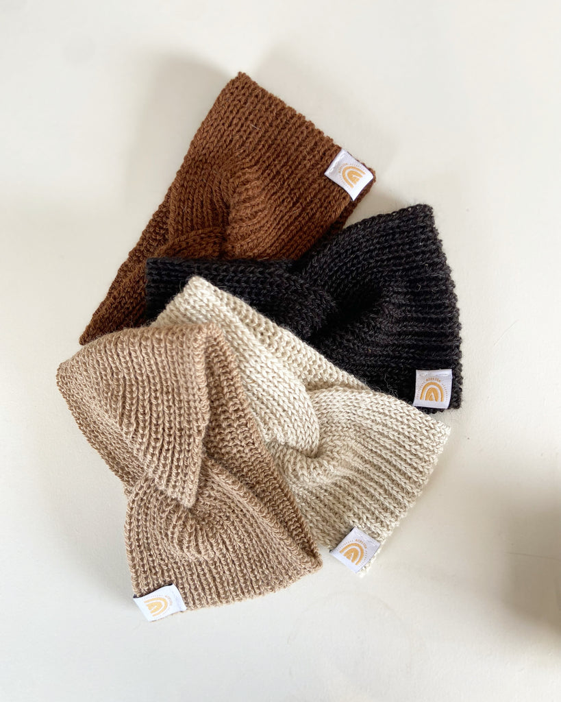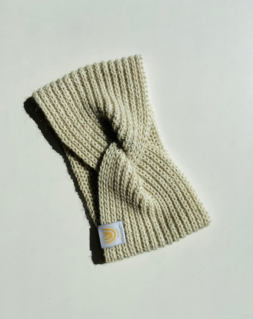 Deze haarband is gemaakt op de handbreimachine met 100% LOKALE alpacawol.